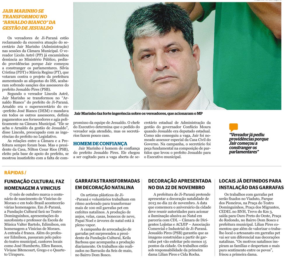 Secretário de Ji-Paraná pressiona vereadores e é denunciado ao MP
